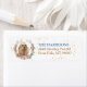 Le côté gauche de ces étiquettes d'adresse de retour présente l'image d'une couronne de fleurs de printemps aux couleurs rose, bleu, or, vert et crème. Au centre se trouve le portrait d'un chien américain Cocker Spaniel couleur bouffon. De minuscules confettis d'or donnent un éclat subtil à l'arrière - plan. Votre texte personnalisé est en or bleu et brun à droite.
