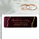 This elegant modern wedding invitation return address label features a burgundy red watercolor agate background trimmed with faux gold glitter. The customizable text combines gold-colored handwriting script and copperplate fonts.