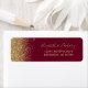 Le bord gauche de cette élégante étiquette d'adresse de retour mariage moderne présente une conception de parties scintillant en faux or. Le texte personnalisable combine écriture manuscrite couleur or pâle, cuivre et polices italiques sur un arrière - plan rouge bordeaux.
