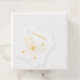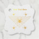 Cette étiquette cadeau de feuille pendante a une illustration en feuille d'or d'une toile d'araignée de forme triangulaire avec araignées déplaisantes avec des marquages de fenêtre en sablier dans la toile et autour. Le dos de la balise est gris gothique. Customisez votre texte à l'avant et à l'arrière avec les modèles.