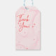 Étiquette cadeau avec lignes ondulées roses et cœu