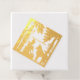 Cette étiquette cadeau en feuille pendante a une illustration en feuille d'or du Petit chaperon rouge dans les bois sous les arbres tenant des fleurs en train de parler au loup. Customisez votre texte à l'avant et à l'arrière avec les modèles.