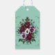 EN : Elevate your packaging with this elegant gift tag featuring a refined floral design. It showcases a bouquet of burgundy roses and pansies on a soothing seafoam green background, complete with matching twine. The perfect final touch to present your gifts with poetry and distinction.