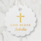 Étiquette-cadeau Croix d'or Dieu Bénie Baptême Religieux Bébé