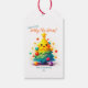"Ayez un très joli Noël" dit le drôle de dessin rétro sapin de Noël avec son visage souriant. Il affiche des couleurs gaies du jaune au vert en passant par le turquoise et le bleu avec une étoile jaune sur le dessus et des ornements amusants. Utilisez cette étiquette-cadeau sur vos forfaits de vacances pour votre ami léger ou parent ou enfants. Le texte, qui est en script turquoise et rouge-orange, est modifiable. Assurez-vous d'échanger le texte de l'exemple les noms de famille et l'année à vos choix.