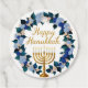 Ajoutez une touche festive et élégante à vos cadeaux de Hanukkah avec cette étiquette cadeau ronde présentant une menorah dorée entourée d'une belle couronne florale aquarelle dans des tons bleus, roses et navy. Le verso comprend un espace pour votre message personnalisé sous une étoile de David. Parfaites pour les cadeaux de Hanukkah, les faveurs de fête ou les friandises faites maison, ces étiquettes apportent chaleur, charme et tradition à vos célébrations de fêtes.