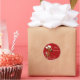 Mignonne souris de dessin animé avec un chapeau de Père Noël en tenant un cadeau derrière son dos. Un arrière - plan rouge profond avec des caractéristiques de neige blanche fait pour un design très mignon, amusant et festif de Noël étiquette cadeau autocollant marque-cadeau.