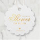 Élégantes étiquettes de faveur de douche nuptiale avec une typographie simple avec le message "De Ma Douche À La Vôtre" en calligraphie et polices de caractères serif. En dessous se trouve un cœur et votre nom. Tous les éléments de conception sont en véritable feuille d'or sur fond blanc. Ces étiquettes élégantes ajoutent une touche de classe à vos faveurs.