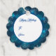 Cette étiquette cadeau de Noël est présentée avec une impression festive de flocons bleus de neige. Customiser cet objet ou acheter tel quel. Image du stock vecteezy.com