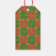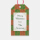 Un tag cadeau avec des lettres de script personnalisées en vert et or sur un motif d'art de Noël rouge et vert avec un motif gothique vintage, fleur de lis restauré à partir de carreaux antiques. Customisez-le pour ajouter votre nom ou votre message, modifier la taille, même enregistrer votre conception pour plus tard.
