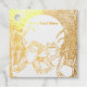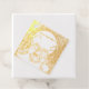 Cette étiquette-cadeau suspendue faite en feuille d'or sur le devant a deux mignonnes grenouilles à bec debout sur un tapis de lis devant une pleine lune entourée de plantes. Customisez votre texte avec le modèle.