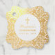 Cet élégant design de confirmation à l'air vintage a un cadre doré vintage avec des feuilles blancs et des décorations en dentelle sur un véritable arrière - plan de feuille d'or. Le texte est à l'intérieur d'un cercle blanc avec une bordure en or et a une croix en or au-dessus. Le nom est écrit dans un élégant script calligraphique. Tout le texte peut être personnalisé et a une couleur dorée semblable aux décorations dorées du cadre. L'arrière - plan avec ses élégantes décorations feuilles en or sur bleu marine est d'une couverture de livre vintage, par T. J. Cobden-Sanderson (1840-1922), pour The Capital par Karl Marx; publié en 1884, maintenant dans le domaine public. Le livre appartenait à l'artiste William Morris.