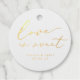 Une étiquette de faveur élégante parfaite si vous offrez des douceurs pour vos faveurs de mariage. Ce design comprend l'expression "l'amour est doux" dans la police de calligraphie moderne de feuille d'or réelle. Personnalisez avec vos noms et votre date de mariage.