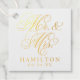 Ces étiquettes en or (ou en argent) font figurer le titre "M. et Mme" dans une écriture élégante avec un monogramme personnalisé du nom de famille et de la date de mariage de la mariée et de la mariée sur le devant et un espace photo en couleur sur le dos - parfait pour afficher une photo fiançailles préférée du couple.