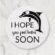 L'étiquette de faveur de la feuille comporte un message joyeux "J'espère que vous vous sentirez mieux bientôt" en même temps qu'un poisson de couleur dorée sautant. Le design général crée un sentiment d'optimisme et de bons voeux pour une reprise rapide.