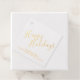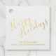 Elégant Gold Foil Holiday Gift Tag avec le titre en feuille d'or véritable 'Happy Holidays' dans le style de police de script moderne avec nom de famille dans le style de police sans serif moderne sur arrière - plan blanc.