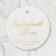 Élégante typographie marque de mariage avec un design simple avec le message "Infused With Love" en calligraphie et vos noms et date ci-dessous. Tous les éléments de conception sont en véritable feuille d'or sur un arrière - plan blanc. Ces étiquettes fantaisistes sont idéales pour un mariage formel et ajoutent une touche classieuse à vos préférences.