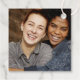 Belle étiquette de faveur de mariage carré avec "Mme et Mme" en écriture calligraphique fluide avec le monogramme du nom de famille du couple et la date du mariage sur un fond blanc propre. Le dos comporte une photo personnalisée du couple. Un accent sophistiqué pour les faveurs de mariage. Tout le texte est entièrement personnalisable.