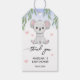 Étiquette cadeau "Merci" pour une baby shower, décorée d'une illustration mignonne d'un koala et de feuilles d'eucalyptus.