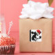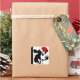 Une mignonne étiquette cadeau de vache noire et blanche avec un chapeau de Père Noël rouge et blanc festif sur sa tête. Customiser plus loin ou acheter tel quel.