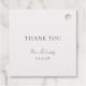 Chic, élégant et absolument romantique. Ces étiquettes de faveur de mariage en feuille d'or comportent des initiales de couple monogrammées encadrées d'une belle bordure florale à l'avant. Le texte "Merci", les noms de couple et la date sont inclus à l'arrière dans une couleur verte foncée chic de la forêt contre un arrière - plan blanc.
