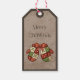 Ajoutez une touche confortable et traditionnelle à vos cadeaux de Noël avec cette étiquette de cadeau de Noël rustique, présentant un design texturé marron inspiré du tissu de jute classique. L'aspect chaud et naturel est associé à une charmante illustration de mitaines de style patchwork avec des feuilles de houx dans les couleurs traditionnelles de Noël rouge, vert et blanc, créant une esthétique festive intemporelle.