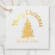 Élégant dîner de Noël Gold Foil Merci Favor Tags, avec Aquarelle vert & arbres Brown sur le dos.