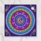 Oeuvres peintes à la main inspirées de motifs décoratifs de style otomi. Représente le weimaraner au centre des cercles et des motifs floraux, ainsi que les lapins qui courent autour des cercles extérieurs de couches de couleurs muli de teintes vives sur un arrière - plan bleu foncé.