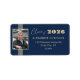 Cette étiquette d'adresse de remise de diplôme élégante de la promotion 2026 comporte des bandes dorées, un cadre photo et du texte sur fond bleu marine.