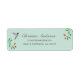 Unique return address label featuring a hand-painted Anna's Hummingbird and flowery branches on a pale blue background. Anna's Hummingbird can be found year-round resident in California, breeding in winter and nesting during the rainy season in gardens and parks to chaparral, frequenting feeders and native plants.
