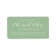 Mariage chic, moderne et simple étiquette d'adresse de retour avec le texte le futur M et Mme en blanc élégant calligraphie sur un arrière - plan vert calme. Ajoutez simplement votre nom et votre adresse. Conçu exclusivement pour vous par Happy Dolphin Studio. Si vous avez besoin d'aide ou de produits correspondants, veuillez nous contacter à happydolphinstudio@outlook.com . Nous sommes heureux de vous aider à faire de votre mariage la plus belle journée! Conçu exclusivement pour vous par Happy Dolphin Studio.