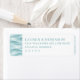 This return address label features a minimalist and modern design with an abstract watercolor wave pattern in light blue and white on the left side, seamlessly blending into the clean white space. The text is arranged centrally in a sans-serif font, using a muted teal color for a sophisticated look. Perfect for formal occasions, this label combines contemporary elegance with customizable elements, making it ideal for personal correspondence or special events. The overall mood is calm and serene, suggesting themes of fluidity and tranquility.