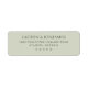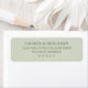 Cette étiquette d'adresse de retour présente un design minimaliste avec un fond vert uni et atténué et un texte centré dans une élégante police serif. La mise en page est simple et équilibrée, utilisant un espace négatif généreux pour mettre en évidence la lisibilité du texte noir. Parfaite pour ceux qui apprécient l'esthétique moderne et discrète, cette étiquette transmet un sentiment de calme et de professionnalisme. Ses lignes épurées et son style classique la rendent idéale pour une correspondance formelle ou des occasions spéciales où une touche de sophistication est souhaitée.