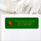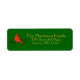 Le côté gauche de l'étiquette d'adresse de retour de vacances présente un beau cardinal rouge assis sur une branche verte profonde sur laquelle poussent de petits feuilles verts et des baies rouges. Le cardinal tient une petite branche avec des feuilles et des baies dans son bec. Le design est placé contre un arrière - plan vert foncé, Le côté droit affiche le nom et l'adresse personnalisables dans le type or élégant. Ces étiquettes peuvent être utilisés avec le Rustic Country Cardinal sur Branche avec des cartes de fin de année de Berries ou par eux-mêmes.