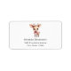 Étiquettes de adresse avec l'illustration d'un adorable cerf de bébé. Grands yeux grands oreilles avec une grande tête et des petits bois bruns. Portant un gros arc rouge.