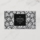 Modèle de carte de visite élégant avec un panneau noir carré de 1,3 po sur le devant. Nom et titre du travail/type d'entreprise dans le panneau avant. Le Nom est créé sur deux lignes en majuscules avec un espace supplémentaire entre chaque lettre donnant un look de marque design de haute qualité. Le panneau carré est également décoré de deux motifs rectangle qui ont été créés à l'aide de l'une des polices de symboles utiles de Zazzle. E-mail, web, adresse et détails de téléphonie joliment arrangés au verso de la carte avec un arrière - plan gris foncé. Cette carte peut également être customisée. Ce Modèle est également disponible dans une variété de styles différents, certains avec des arrière - plans de couleur plate et des arrière - plans d'image. Aussi disponible avec différents panneaux de couleurs.