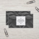 Modèle de carte de visite élégant avec un panneau noir carré de 1,3 po sur le devant. Nom et titre du travail/type d'entreprise dans le panneau avant. Le Nom est créé sur deux lignes en majuscules avec un espace supplémentaire entre chaque lettre donnant un look de marque design de haute qualité. Le panneau carré est également décoré de deux motifs rectangle qui ont été créés à l'aide de l'une des polices de symboles utiles de Zazzle. E-mail, web, adresse et détails de téléphonie joliment arrangés au verso de la carte avec un arrière - plan gris foncé. Cette carte peut également être customisée. Cette version a une image de superposition texturée blanche semi-transparente sur la couleur arrière - plan.