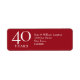 ÉTIQUETTE D'ADRESSE RUBY POUR LES 40 ANS DE MARIAGE. Date de l'anniversaire, nom et détails de l'adresse en élégant texte blanc sur fond rouge rubis.