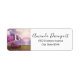 Étiquettes de adresse à l'image pittoresque d'un paisible lac violet. Entouré de cerisiers luxuriants et de cascades.