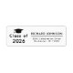 Élégante étiquette d'adresse de retour de diplôme blanc avec un casquette noir et le nom et l'adresse du diplômé dans moderne.