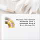 Un regard professionnel pour votre correspondance, cette étiquette d'adresse de retour comporte des cercles d'or concentriques sur un arrière - plan blanc clair. Personnalisez avec vos informations en remplaçant l'exemple de texte dans le modèle de conception.
