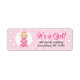 Joli dessin d'illustration de nouveau-né fille enveloppé dans une couverture rose avec le texte "c'est une fille !" avec un arrière - plan rose et beaucoup de coeurs. Célébrez votre journée de baby shower avec ce magnifique design Kakigori Studio.