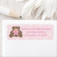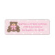 Un ours en peluche mignon et rose ceinturon rose pastel et blanc pois motif arrière - plan baby shower retour d'adresse étiquettes.