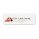 Cette élégante étiquette d'adresse de retour présente un grand chapeau rouge de style derby avec des roses et un nœud/noeud papillon noir. Personnalisez selon vos besoins. Vous pouvez trouver d'autres produits assortis dans ma boutique.
