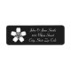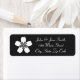 Une étiquette d'adresse de retour noire est décorée d'une fleur de cerisier blanc sur la gauche et d'un exemple de texte sur la droite pour customiser de le faire vous-même. Utilisez ces étiquettes à l'extérieur de vos invitations ou cartes "Merci" pour une touche élégante, surtout lorsqu'ils sont combinés avec les autres Sakura Charming en cartes noires, ou échangez avec les étiquettes d'adresse standard pour pré-adresser les cartes RSVP pour vos invités.