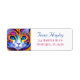 Chat kitty cool aux yeux bleus mystiques et à fourrure colorée AI généré des autocollants d'adresse de retour d'art.