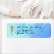 Elégante étiquette d'adresse de retour mariage thématique bord de mer, avec un aqua et arrière - plan bleu aquarelle. Un hippocampe décoratif en or se trouve sur le côté gauche. Personnalisez l'adresse de retour pour votre mariage à la plage.