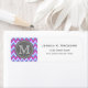 motif de chevron de zigzag cool, rose, violet, bleu et blanc et géométrique, mignon et géométrique avec plaque d'identification grise pour votre lettre initiale monogramme personnalisée. Chic monogrammed étiquette de adresse moderne.