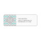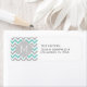 Turquoise bleu et gris moderne Chevron Adresse de retour Étiquettes avec Monogramme. Quatrefoil gris clair.