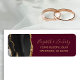 Le bord gauche de cette élégante étiquette d'adresse de retour de faire-part de mariage moderne comporte une bordure d'aquarelle en noir ornée d'une parties scintillant en faux or. Le texte personnalisable combine écriture manuscrite de couleur or et polices de cuivre sur un arrière - plan bordeaux.